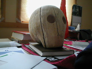 Disse to "hodene" var del av en eksamensoppgave i tre og skulptur, og heter Likegyldighet og Angst - jeg har utelatt nr tre, som heter Skadefryd... |